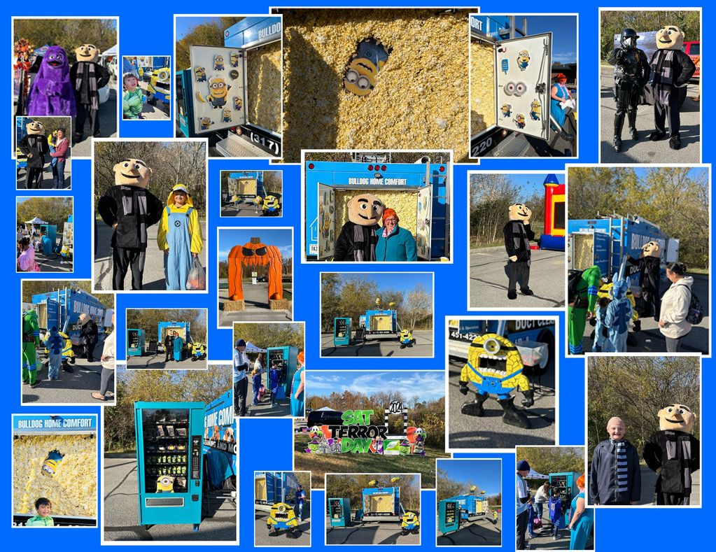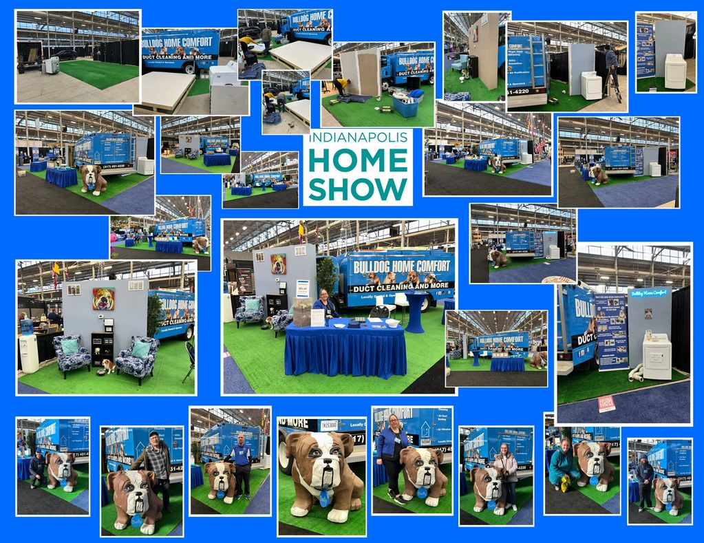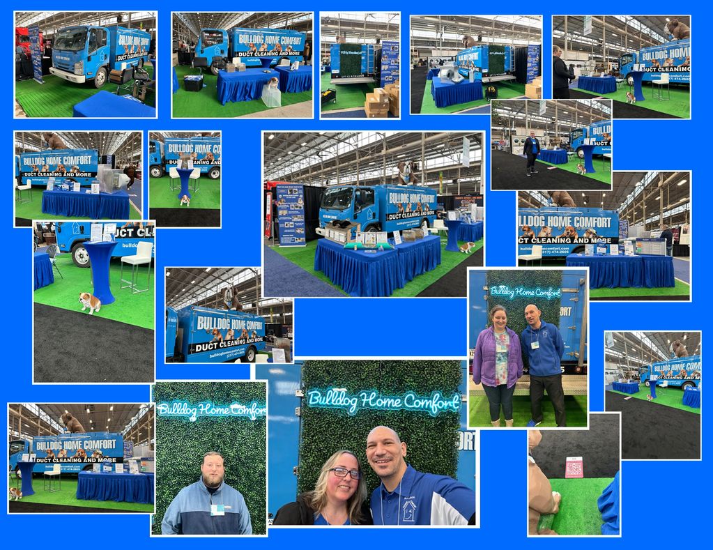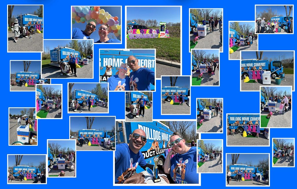 In 2025, we were back in our familiar spot. We built some walls to simulate inside the home. Dusty was down on the floor and made for a great photo op before booking your duct cleaning.